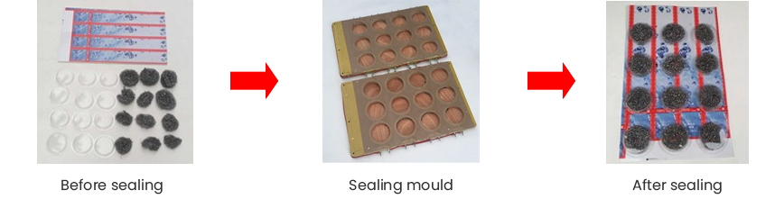 1, The machine uses the pulse fever from the mould/die with heating elements. It seals paper card and blister perfectly, and the sealed products are not only with moistureproof and dustproof function, but also with eye-catching appearance.